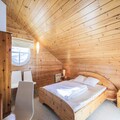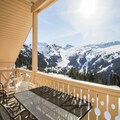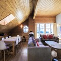 High above the picturesque resort of Flaine, at an altitude of 1,800 meters, lies the Le Château de Crans Residence, a haven of tranquility and alpine charm. This Scandinavian-style chalet, nestled in the Hameau de Flaine, offers breathtaking panoramic views of the majestic Alpine peaks, immersing you in the serene beauty of the mountains. Here, you can escape the bustle of everyday life while still being close to all the action Flaine has to offer. \n\nInside, the residence boasts 11 fully equipped apartments, each designed for comfort and relaxation. Your spacious 129 m² vacation rental features four bedrooms, two bathrooms, and a private sauna, perfect for unwinding after a day on the slopes. The open-plan living area, complete with cozy sofas, a wood-burning stove, and a dining table for ten, creates a warm and inviting space for family and friends to gather. The kitchen is equipped with everything you need to prepare hearty meals, while the balcony offers a peaceful retreat to soak in the stunning mountain vistas. \n\nSki enthusiasts will appreciate the proximity to the ESF meeting points and Piou Piou Club, just 500 meters away. Access to the slopes is convenient with the Gérats chairlift and the Opal slope nearby, depending on snow conditions. For added ease, free shuttle services run every 15 minutes, connecting you to the resort’s activity centers, shops, and dining options. The General Store, just two minutes away, provides essentials, ski rentals, and a welcoming restaurant. \n\nWhether you’re seeking adventure on the slopes or a peaceful alpine escape, Le Château de Crans Residence offers the perfect blend of comfort, convenience, and breathtaking surroundings. Make unforgettable memories in this idyllic mountain retreat.