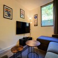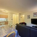 The spacious 60 m² apartment, located on the first floor with elevator access, is thoughtfully designed to accommodate up to seven guests. The layout includes two cozy bedrooms—one with a double bed and the other with bunk beds and a pull-out bed—along with a living room featuring a comfortable double sofa bed and flat-screen TV. The well-equipped kitchen boasts a ceramic hob, oven, microwave, dishwasher, large refrigerator, freezer, and both Nespresso and filter coffee machines, making it easy to prepare meals after a day of exploration. Additional amenities include a bathroom with a bathtub, a separate shower room adjoining the double bedroom, a washing machine, dryer, and a ski locker for your convenience.
