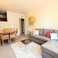 Spanning 48 square meters, the apartment is thoughtfully designed to accommodate up to six guests. The cozy bedroom features a double bed and a set of bunk beds, while the living room offers additional sleeping space with a comfortable double sofa bed. Modern conveniences include a flat-screen TV, DVD player, and Wi-Fi, ensuring entertainment and connectivity throughout your stay. The open-plan kitchen is fully equipped with a ceramic hob, dishwasher, oven, and microwave, making meal preparation a breeze. A bathroom with a bathtub and washing machine adds to the comfort, while the separate toilet enhances privacy. Ski lockers are provided for your convenience, and the residence maintains a no-smoking and no-pets policy for a clean and pleasant environment.