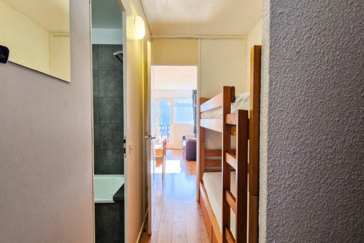 High above the serene landscapes of the Haute-Savoie region, this charming apartment in the Flaine Forêt district invites you to immerse yourself in the beauty of the French Alps. Whether you're chasing powdery slopes in winter or exploring vibrant alpine trails in summer, this residence offers a perfect blend of comfort and convenience just 250 meters from the ski school meeting points and lifts. The south-facing balcony provides a tranquil spot to soak in the sunshine and admire the surrounding peaks, setting the tone for a memorable mountain getaway. \n\nDesigned to accommodate up to six guests, the apartment boasts a thoughtfully arranged layout with a cozy bedroom featuring a double bed, a set of bunk beds in the entrance, and a double sofa bed in the living room. The open-plan kitchenette is equipped with ceramic hobs, a combination oven, and a dishwasher, making it easy to prepare hearty meals after a day of adventure. Modern amenities such as a television and a bathroom with a bathtub ensure a relaxing stay, while the ski locker adds practicality for winter sports enthusiasts. Please note that bed linen and towels are not provided, and the upper bunk is not suitable for children under six years old. \n\nFlaine Forêt is perfectly positioned for both convenience and exploration. Shops, restaurants, and essential services are just a short stroll away, while the nearby slopes offer direct access to the renowned Grand Massif ski area. In summer, the included Flaine Summer Pass unlocks a world of activities, from hiking and mountain biking to cultural events and family-friendly fun. \n\nWhether you're seeking thrilling descents, peaceful alpine walks, or simply a cozy retreat to unwind, this residence is your gateway to the enchanting charm of Flaine. Let the crisp mountain air and breathtaking vistas inspire your next adventure in the heart of the Alps.