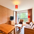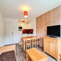 In the serene heart of Flaine Forêt, this charming garden-level apartment offers a delightful alpine retreat with a south-facing balcony that invites you to soak in the mountain views and crisp air. Whether you’re here for the snow-covered slopes or the vibrant summer activities, this residence is perfectly positioned just 500 meters from the ski lifts and 150 meters from the shopping mall. With the free ski bus stopping right in front, convenience is at your doorstep, making every moment of your holiday effortless and enjoyable. \n\nDesigned for up to six guests, the apartment spans 54 square meters and boasts a cozy yet functional layout. The living room features a single sofa bed and trundle bed, while two bedrooms provide restful spaces—a double bed in one and two single beds in the other. The open-plan kitchen is equipped with modern amenities including a ceramic hob, multifunction oven, refrigerator, and dishwasher, ensuring you can prepare meals with ease. Additional comforts include a flat-screen TV with cable channels, a bathroom with a bathtub, a shower room with toilet, and a separate toilet. With parquet flooring and tiled areas, the apartment combines warmth and practicality. \n\nBeyond the residence, Flaine offers a wealth of activities and attractions. In winter, the slopes are just minutes away, while summer brings the “Flaine Summer Pass,” granting access to numerous adventures for stays of six nights or more. The nearby shopping mall caters to all your needs, and covered parking spaces are available for added convenience. Whether you’re skiing, hiking, or simply relaxing, this apartment serves as the perfect base for exploring the beauty of the French Alps. \n\nChoose this welcoming home for a holiday filled with comfort, adventure, and unforgettable alpine charm.