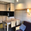 High above the serene landscapes of the French Alps, this charming apartment in the Flaine Forêt district offers a cozy retreat for adventurers and nature lovers alike. With the slopes and ski school meeting points just 50 meters away, your alpine escape begins the moment you step outside. Whether you're here for the thrill of skiing or the tranquility of summer hikes, this residence places you at the heart of it all. The south-facing balcony invites you to soak in the sunshine and marvel at the majestic mountain views, creating a perfect backdrop for your holiday memories. \n\nInside, the 37 m² apartment is thoughtfully designed to accommodate up to five guests. The bedroom features two single beds and a trundle bed, while the living room boasts a comfortable double sofa bed. A flat-screen TV ensures entertainment after a day of adventure, and the bathroom with a bathtub offers a relaxing end to your day. The kitchenette is equipped with ceramic hobs, a microwave, and a dishwasher, making meal preparation a breeze. Additional conveniences include a ski locker and duvets for a cozy night's sleep. Please note that bed linen and towels are not provided, and the apartment is strictly non-smoking.\n\nBeyond the residence, Flaine Forêt offers a vibrant mix of shops, restaurants, and activities. In the summer, guests staying six nights or more can enjoy the Flaine Summer Pass, granting access to a variety of exciting activities. Whether you're exploring the nearby trails, indulging in local cuisine, or simply basking in the alpine ambiance, Flaine is a destination that captivates in every season.\n\nChoose this welcoming apartment for your next getaway and experience the magic of the French Alps with comfort and convenience at your fingertips.