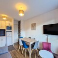 High in the serene beauty of the French Alps, this charming apartment in Flaine Forêt offers a perfect blend of comfort and convenience for your mountain escape. With its garden-level location and south-facing balconies, you’ll wake up to the crisp alpine air and stunning views that inspire adventure and relaxation alike. Whether you’re here for the snow-covered slopes or the vibrant summer trails, this residence is your gateway to the wonders of Flaine. The free ski bus stopping right outside ensures effortless access to the pistes and lifts just 500 meters away, while the nearby shopping mall is only a short 150-meter stroll for all your essentials. \n\nInside, the apartment is thoughtfully renovated and equipped to accommodate up to six guests. The cozy living room features a double sofa bed, while the bedroom offers a comfortable double bed. A separate cabin includes bunk beds, perfect for older children or friends. The open-plan kitchen is fully equipped with modern appliances, including an induction hob, multifunction oven, microwave, and dishwasher, making meal preparation a breeze. Additional amenities include a flat-screen TV with cable channels, a bathroom with a bathtub, a shower room, and a separate toilet. For added convenience, there’s a ski locker and laundry facilities on-site, and pets are welcome for an additional charge. \n\nThe residence’s prime location places you at the heart of Flaine’s activities. In winter, enjoy world-class skiing and snowboarding, while summer brings the excitement of the Flaine Summer Pass, offering a variety of outdoor adventures for stays of six nights or more. Covered parking spaces are available upon reservation, and Wi-Fi access can be arranged for a small fee. Whether you’re exploring the slopes or soaking in the alpine tranquility, this apartment provides the ideal base for unforgettable memories in the French Alps.