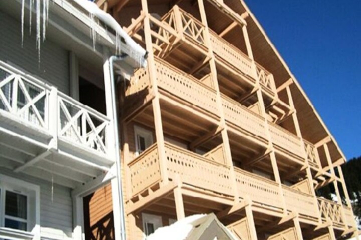 Step inside this cozy 48 m², south-facing apartment, located on the second floor of a chalet with just 13 units, and feel instantly at home. Designed to accommodate up to six guests, the apartment features two comfortable bedrooms with double beds, a set of bunk beds in the entrance, and a warm living room with a flat-screen TV. The open kitchen is fully equipped with modern appliances, including an oven, microwave, and dishwasher, making it easy to prepare meals after a day of exploring. The parquet, tile, and carpet flooring add to the homey ambiance, while the south-facing balcony offers stunning views of the surrounding peaks.