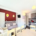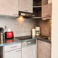 Spanning 55 m² on the 6th floor, the apartment is thoughtfully designed to accommodate up to eight guests. The layout includes a cozy double bedroom, two twin bedrooms, and a comfortable double sofa bed in the living room. The open kitchen is fully equipped with a ceramic hob, dishwasher, and microwave, making it easy to prepare meals after a day of skiing or hiking. Modern amenities such as a flat-screen TV, a bathroom with a bathtub, a separate shower room, and a huge 40 m² south- and east-facing terrace add to the charm and practicality of this home away from home. Guests also enjoy access to covered parking, a ski locker, and exclusive use of the residence's private indoor pool, sauna, and jacuzzi.