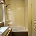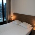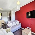 Inside, the apartment is thoughtfully designed to accommodate up to four guests. The bedroom features two single beds side by side, while the living room offers a comfortable double sofa bed. A well-equipped open-plan kitchen includes a ceramic hob, dishwasher, microwave, and washing machine, making meal preparation a breeze. The bathroom, complete with a bathtub, adds a touch of comfort after a day on the slopes. Modern amenities such as a flat-screen TV and a private ski locker ensure convenience, while the residence’s private indoor pool, sauna, and outdoor jacuzzi provide a luxurious way to unwind.