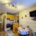 High above the serene landscapes of Flaine, this charming apartment in the Flaine Forêt district offers a cozy alpine retreat with modern comforts. Just 250 meters from the slopes and ski school meeting points, it’s perfectly situated for winter sports enthusiasts and families looking to immerse themselves in the beauty of the French Alps. With shops nearby and a bus stop only 20 meters away, convenience is at your doorstep. The south-facing balcony invites you to soak in the sunshine and admire the breathtaking mountain views, creating the perfect setting for relaxation after a day of adventure. \n\nDesigned for up to four guests, the apartment features a thoughtfully arranged layout. The bedroom boasts a comfortable double bed, while the cabin with a window includes bunk beds, making it ideal for families. The living room is equipped with a flat-screen TV and DVD player, offering entertainment for cozy evenings indoors. The kitchenette, complete with induction hobs, oven, microwave, and dishwasher, ensures you have everything needed to prepare delicious meals. A bathroom with a bathtub and heated towel rail adds a touch of luxury, while the separate toilet enhances convenience. Ski lockers are available for easy storage, and the apartment is non-smoking for a fresh and welcoming atmosphere. \n\nFlaine’s vibrant surroundings promise unforgettable experiences year-round. In winter, the slopes beckon with pristine snow and thrilling descents, while summer transforms the region into a haven for outdoor activities. Guests staying six nights or more during the summer season receive the Flaine Summer Pass, granting access to a variety of exciting adventures. Whether you’re skiing, hiking, or simply enjoying the alpine charm, this residence is your gateway to the wonders of Flaine. \n\nMake this your home away from home and create lasting memories in the heart of the French Alps.
