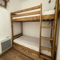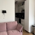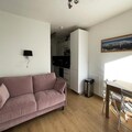 Designed to accommodate up to four guests, the 25 m² studio is thoughtfully equipped for comfort and functionality. The cabin entrance features a set of bunk beds, while the living room offers a comfortable double sofa bed and a flat-screen TV for relaxing evenings. The kitchenette is fully equipped with modern amenities, including ceramic hobs, a combi oven, a dishwasher, and a spacious refrigerator with a freezer, making it easy to prepare meals after a day on the slopes. The bathroom includes a bathtub for a soothing soak, and the separate toilet adds extra convenience. A ski locker is also provided for secure storage of your equipment.