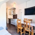 High above the serene landscapes of the French Alps, this inviting duplex apartment in Flaine Forêt offers a perfect blend of comfort and alpine charm. Imagine waking up to the crisp mountain air and stepping onto your private south-facing terrace to soak in the panoramic views of the slopes. Whether you're here for winter skiing or summer adventures, this residence places you at the heart of it all, just 200 meters from local shops and at the foot of the pistes for ultimate convenience. Flaine’s renowned ski domain is right outside your door, promising unforgettable days on the snow-covered trails. \n\nDesigned for up to six guests, the apartment boasts a thoughtful layout with two cozy bedrooms, a bright living room, and modern amenities to ensure a relaxing stay. The master bedroom features a plush double bed and flat-screen TV, while the second bedroom offers flexible sleeping arrangements with bunk beds, a single bed, and a trundle bed. The open-plan kitchen is fully equipped with an induction hob, microwave oven, refrigerator, and dishwasher, making it easy to prepare hearty meals after a day of exploration. Two bathrooms, including one with a bathtub, and a separate toilet provide added convenience. Guests will also appreciate the boot and glove dryer, ski locker, and non-smoking environment. \n\nAs part of the residence, you’ll enjoy complimentary access to luxurious facilities such as the indoor pool, sauna, and outdoor jacuzzi—perfect for unwinding after an active day. In the summer, stays of six nights or more include the Flaine Summer Pass, granting access to a variety of exciting activities. Covered parking is available for rent, ensuring hassle-free arrivals and departures. \n\nWhether you're chasing powder in winter or exploring alpine trails in summer, this apartment is your gateway to the beauty and adventure of Flaine. Make unforgettable memories in this idyllic mountain retreat, where every detail is designed to enhance your holiday experience.