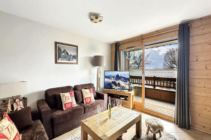 In the heart of the charming alpine village, this modern and spacious 75m² apartment offers the perfect retreat for families and friends seeking a memorable mountain escape. With its prime location just steps from the ski bus and a short walk to the cable car, you’ll have seamless access to the slopes and the breathtaking beauty of the French Alps. The apartment’s contemporary design and warm ambiance create an inviting atmosphere where relaxation and adventure go hand in hand. \n\nInside, you’ll find three beautifully appointed bedrooms, including a master suite with a queen-size bed and private shower room, and two additional bedrooms with comfortable double beds. The open-plan living area features a fully equipped kitchen with modern appliances, making it easy to prepare meals after a day on the slopes. A spacious bathroom, separate toilet, and thoughtful amenities like a washing machine, dishwasher, and specialty cookware ensure a stress-free stay. \n\nStep outside onto the expansive 70m² balcony terrace, the perfect spot to enjoy sunny afternoons with family or friends while taking in the crisp mountain air. Whether you’re savoring a raclette dinner or simply soaking in the views, this outdoor space adds a touch of magic to your alpine getaway. \n\nWith underground parking, a ski locker, and Wi-Fi included, every detail has been considered for your convenience. Beyond the property, the village center offers a delightful array of shops, restaurants, and après-ski options, while the surrounding mountains promise endless opportunities for skiing, hiking, and exploring. Make this your home away from home and create unforgettable memories in the heart of the Alps.
