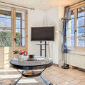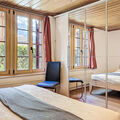 "Bon-Accueil", 3-room apartment on the ground floor. Object suitable for 3 adults + 2 children. Partly renovated, comfortable and tasteful furnishings: living/dining room with Scandinavian wood stove and satellite TV. Exit to the terrace, east facing position and south-east facing position. 1 room with 2 beds (90 cm, length 200 cm). 1 room with 1 x 1 bunk beds (90 cm, length 200 cm), 1 double bed (140 cm, length 200 cm). Large, open kitchen (oven, dishwasher, 4 induction hot plates, toaster, kettle, microwave, electric coffee machine, Capsules for coffee machine (Nespresso), raclette grill, fondue Set (cheese)). 2 showers/WC. Terrace. Terrace furniture. View of the mountains, the ski run and the countryside. Facilities: washing machine, dryer, children's high chair, baby cot for up to 3 year olds. Parking (1 car). Please note: non-smokers only.