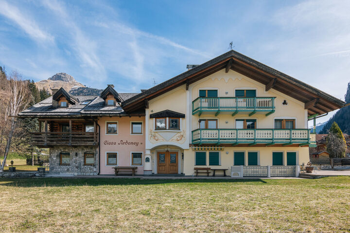 Mazzin 4 km from Canazei: Apartment house "Ardoney". 7 apartments in the property. 800 m from the centre of Campitello, 4 km from the centre of Canazei, 3 km from the centre of Mazzin, in a sunny position. In the house: storage room for skis, ski boot dryer. Parking on the premises. Grocery 800 m, bus stop 50 m, indoor swimming pool 4.1 km. Ski lift 1.3 km, gondola lift 1.3 km, ski bus stop 50 m. Nearby attractions: Bolzano 50 km. Well-known ski regions can easily be reached: Col Rodella (Sella Ronda) 1.3 km, Belvedere / Pecol 3.7 km.