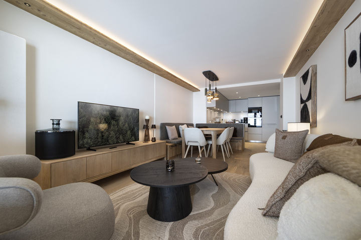 Located close to the center of Val d’Isère, this beautiful 80 sqm ground-floor apartment comfortably accommodates up to 6 guests. Set in a quiet residential area just 450 meters from the slopes, it offers access to a wellness area with swimming pool, sauna, and hammam—perfect after a day in the mountains.