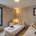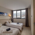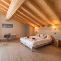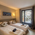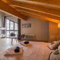Facing east, the chalet enjoys beautiful views across to Peisey-Vallandry and Month Blanc. It comfortably sleeps up to 15 guests across five stylish en-suite bedrooms. The layout includes a spacious first-floor family room with twin beds at either end and a shared family bathroom, three additional twin en-suite bedrooms, and a charming loft-style family room, with its own en-suite shower room and fitted wardrobes.
