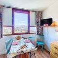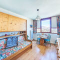 1-room studio 16 m2 on 11st floor, north facing position. Beautiful furnishings: living/dining room with 1 pull-out bed (2 pers. 2 x 80 cm, length 190 cm), TV (flat screen). Kitchenette (2 hot plates, mini-oven, kettle, microwave, electric coffee machine). Bath/WC. Electric heating. Parquet floors. Beautiful view of the mountains and the valley. Facilities: Internet (WiFi, extra). Please note: smoke alarm. Offer by a private individual according to Art. 155, IV of CGI. FR7370.800.27