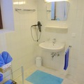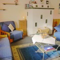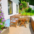A private patio area can be found by the entrance area to this apartment and is furnished with garden table and benches, suitable for outdoor dining. A further bench can be found to the front of the apartment in a protected and sunny southerly position and a fenced garden area surrounds the accommodation. Sun loungers and suitable cushions, a parasol and also a BBQ are provided for your personal use. The peaceful position offers a wonderful panoramic view of the mountains.