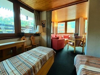 This spacious 4-room apartment comfortably accommodates up to 8 people and is located on the second floor of a large chalet. The apartment features a master suite with a double bed, a bedroom with two single beds, and a cabin room with t...