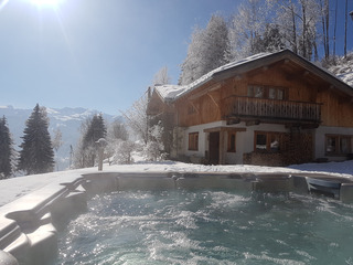 La Terrasse is a lovely and bright modern chalet with a private hot tub and shared heated outdoor swimming pool (summer only). It has 3 bedrooms - the master bedroom has French doors out onto the garden, an en suite bathroom and the beds...