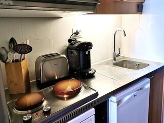 This bright and well-equipped studio apartment, located on the 4th floor of a building with an elevator, can accommodate up to 6 people. It features a living area with a BZ sofa bed and a trundle bed, along with a mountain corner with tw...