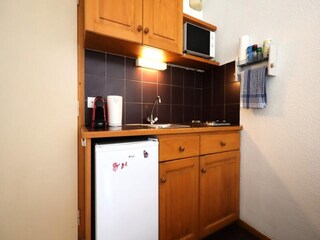 "Parc des Airelles", 2-room apartment 33 to 34 m2. Bright, beautiful furnishings: living/sleeping room with 2 sleeping facilities, dining table and TV can be hired. Alcove with 1 x 2 bunk beds. 1 room with 2 beds. Open kitchen (dishwashe...