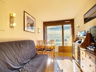 1-room studio 28 m2 on 1st floor. Bright, fully renovated: living/dining room with 1 double sofabed (1 x 140 cm, length 190 cm), TV (flat screen), hi-fi system and DVD. Exit to the balcony. Entrance hall with 1 x 2 bunk beds (80 cm). Ope...
