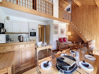 This apartment, located in the heart of Méribel-Mottaret, offers a cozy space with a living room featuring two sofas, a dining area with a table and chairs, and a bedroom with a double bed. It also includes a bathroom with a bathtub and ...