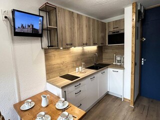 1-room studio 24 m2 on 1st floor. Simple and practical furnishings: living/dining room with 1 double sofabed (140 cm), 1 pull-out bed (2 pers. 2 x 80 cm), TV (flat screen). Exit to the balcony, north-east facing position. Kitchenette (2 ...