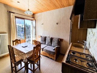 This cozy studio, located in the Crêt des Roches Residence, offers a peaceful retreat for up to 4 guests. Spanning 30m², the apartment includes a living room with a 140 cm BZ sofa and a separate cabin area with bunk beds (2 x 90 cm). Th...