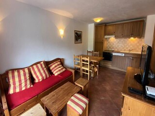 This studio apartment is a perfect base for your ski getaway, offering 30m² of space designed to accommodate up to 4 people. The living area includes a convertible sofa for 2 people and 2 bunk beds in a separate mountain corner. The apar...