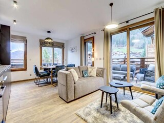 This cozy apartment in the heart of Avoriaz offers a comfortable stay for up to 5 people. The living area features a sofa bed and a pull-out bed, while the cabin area includes bunk beds, offering ample sleeping space. Pets are allowed fo...