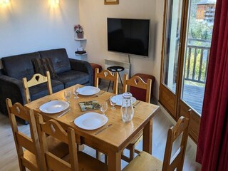 This bright and spacious 28 m² studio apartment accommodates up to 6 people, offering a comfortable stay for families or small groups. It features a mountain corner with bunk beds for 2 people, a living area with a clic-clac sofa bed and...
