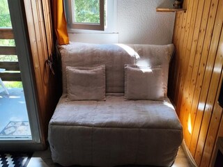 Maxi-studio 6 people 25 M² Loggia Expo South/West Mountain corner with bunk beds for 2 people Living room: 1 sofa bed + 2 single beds Bathroom: shower + toilet Equipped kitchen Ski locker Bright, quiet and well-equipped apartment ...