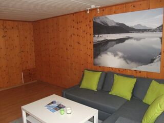 Sunny 2.5-room flat on the 2nd floor, quietly located with sunny balcony, view of Piz Nair and Corviglia. Bright, friendly flat with entrance hall, open-plan kitchen to dining room, separate living room, one bedroom with box-spring bed, ...