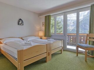 "Chalet Sans Soucis", 4-room apartment 74 m2 on 2 levels on 1st floor, south facing position. Renovated in 2020, comfortable and tasteful furnishings: 1 room with 1 french bed (1 x 160 cm). Exit to the balcony, south facing position. 1 r...