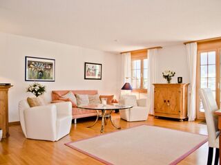 Sunny 2.5-room flat on the 2nd floor, quietly located with sunny balcony, view of Piz Nair and Corviglia. Bright, friendly flat with entrance hall, open-plan kitchen to dining room, separate living room, one bedroom with box-spring bed, ...