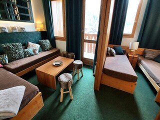 Perched in the serene hamlet of Le Mottet, this charming two-room mezzanine apartment offers a cozy alpine retreat with direct access to the slopes. Imagine stepping out onto your west-facing balcony, overlooking the pristine snow-covere...