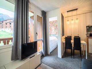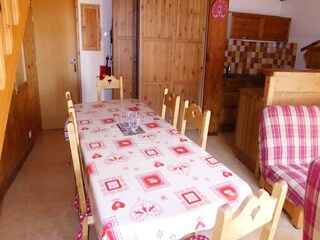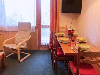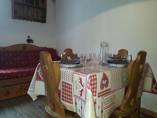 Property, along with its charming Savoyard style, provides a comfortable stay for up to 4 guests in a 22 m² space. The living room is furnished with two sofa beds, including a trundle bed, and a dining area with a table and three chairs....