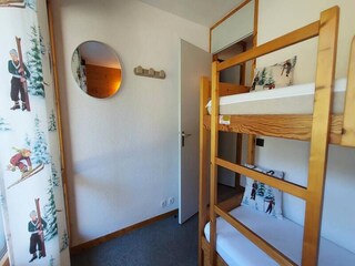 This charming 2-room apartment with a mezzanine is designed to accommodate up to 5 guests. It features a bedroom with two single beds, a living room with a single bench seat, and a mezzanine with a double bed, accessible by a ladder. Duv...