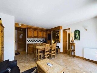 This charming apartment, located in the heart of the Avoriaz resort, offers a cozy retreat for up to six guests. It features a living room with two sofa beds, one of which has a trundle bed, and a cabin area with two bunk beds. A separat...