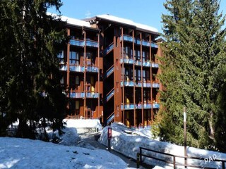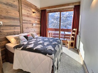 "Odalys Référence Le Grand Panorama 1", 3-room apartment 35 to 40 m2. Rustic furnishings: living/sleeping room with 1 sofabed, 1 pull-out bed, dining table and TV (flat screen). Exit to the balcony. 1 room with 1 french bed (140 cm, leng...