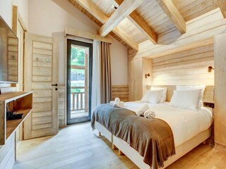 "Parc des Airelles", 2-room apartment 35 to 46 m2. Bright, beautiful furnishings: living/sleeping room with 2 sleeping facilities, dining table and TV can be hired. Alcove with 2 sleeping facilities. 1 room with 1 french bed and 1 sleepi...