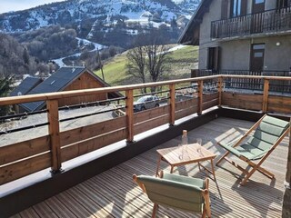 5-room apartment 100 m2 on 2 levels on 1st floor. Rustic and cosy furnishings: entrance hall. Living/dining room with dining nook and satellite TV. Exit to the balcony. 1 room with sloping ceilings with rooflight with 1 sofabed, 1 double...