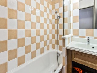 1-room apartment 40 m2 on 2 levels on 1st floor. Living/dining room with TV. Exit to the balcony. Kitchenette (dishwasher, 4 ceramic glass hob hotplates, kettle, electric coffee machine, combination microwave). Sep. WC. Upper floor: gall...
