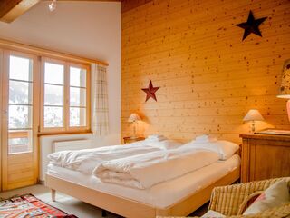 The 147m2 4.5-room apartment on the top floor chalet has three bedrooms with double bed, a bathroom with bath, shower and toilet, a bathroom with bath and toilet and a separate toilet. In the spacious, bright living/dining area with open...