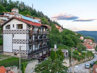 New chalet set in a magnificent pine wood. Just 3 minutes walk from the gondola lift. Great location in the center of Borovets with shops pubs and restaurants all nearby. The 2 storey wooden chalet has a large verandah, 3 bedrooms 2 bat...