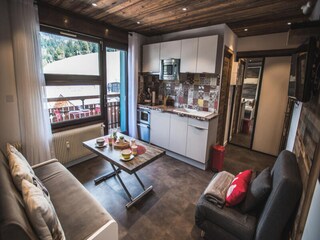 "Asters 18 Bâtiment C1", 1-room studio 18 m2 on 2nd floor. Living/dining room with 1 double sofabed (140 cm, length 190 cm), TV (flat screen). Exit to the balcony. Kitchenette (2 hot plates, mini-oven, microwave, electric coffee machine)...