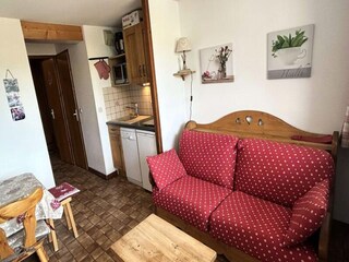 Basking in the golden glow of the French Alps, this charming studio apartment offers a cozy retreat with breathtaking views of Mont Bisanne. Situated on the second floor of a south-facing residence, it invites you to wake up to the seren...