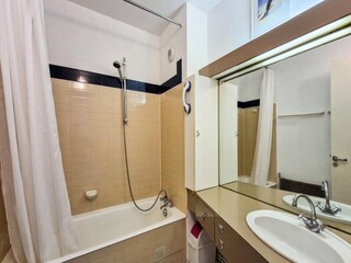 1-room apartment 28 m2 on 8th floor, south facing position. Very simple furnishings: living/dining room with 1 pull-out bed (2 pers. 2 x 80 cm, length 190 cm), TV (flat screen). Exit to the balcony, south facing position. Alcove with 1 x...