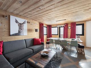 Chalet Hermine VI is a conveniently located 125m2 chalet apartment in a larger building, in the quieter area of Plein Sud, Val Thorens, built with traditional building materials, with a wood burning fireplace in natural stone (one bag of...